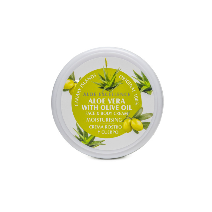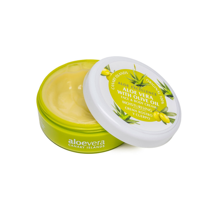 Este o cremă hidratantă pentru față și corp, "Aloe Vera with Olive Oil Moisturising", de la marca Aloe Excellence. Aceasta este fabricată în Insulele Canare și conține aloe vera și ulei de măsline.