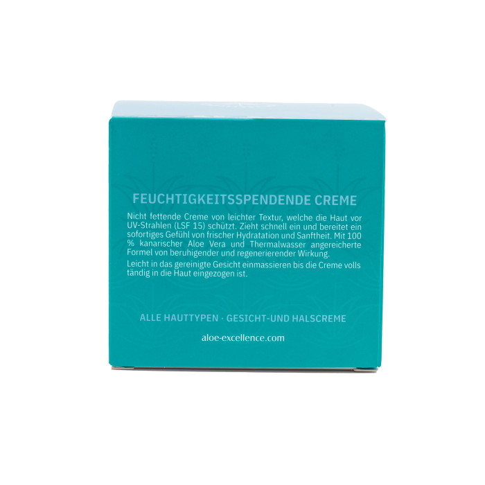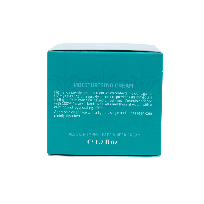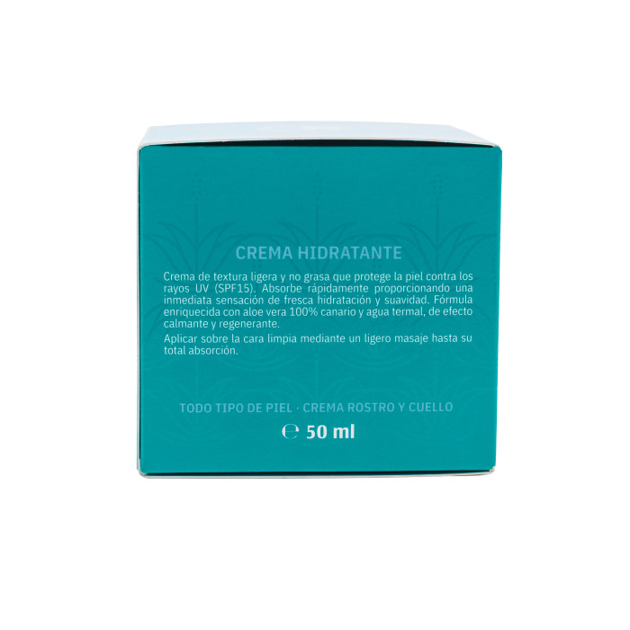 Lehký krém bez obsahu olejů, který chrání pokožku před UV zářením, SPF 15. Rychle se vstřebává a poskytuje okamžitý pocit svěžesti, hydratace a hebkosti. Receptura obohacená o 100% kanárskou aloe vera a termální vodu má zklidňující a regenerační účinek.