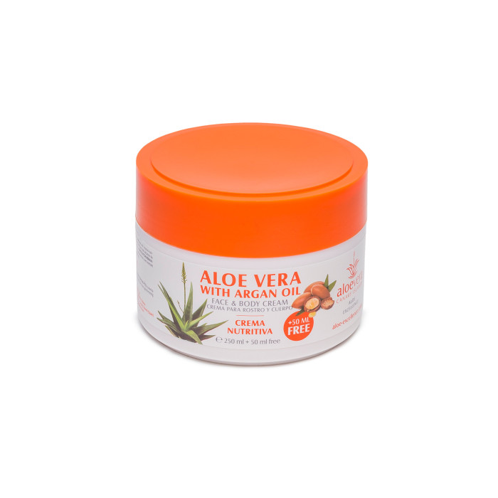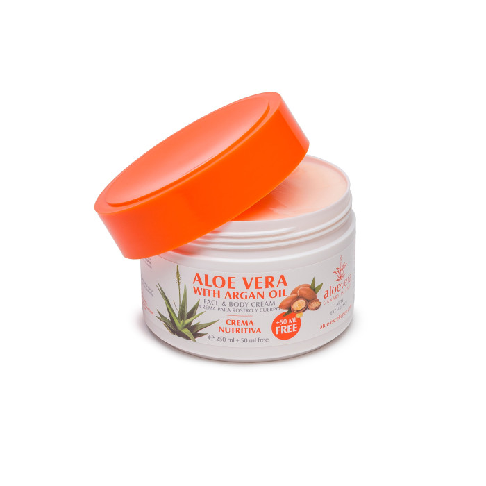 Aloe Vera s vyživujícím arganovým olejem je gelový krém pro každodenní použití na obličej a tělo. Hydratuje a pečuje o pokožku díky aloe vera a arganovému oleji. Arganový olej se získává lisováním zralých semen arganovníku (Argania spinosa). Je extrémně hydratační a regenerační díky vysokému obsahu vitamínu E (obsahuje třikrát více vitamínu E než olivový olej). Stimuluje regeneraci a okysličení pokožky a zároveň dodává elasticitu. Podporuje obnovu buněk a je silným antioxidantem. Doporučuje se pro všechny typy pleti, zejména pro suchou, díky své vysoké hydratační síle.